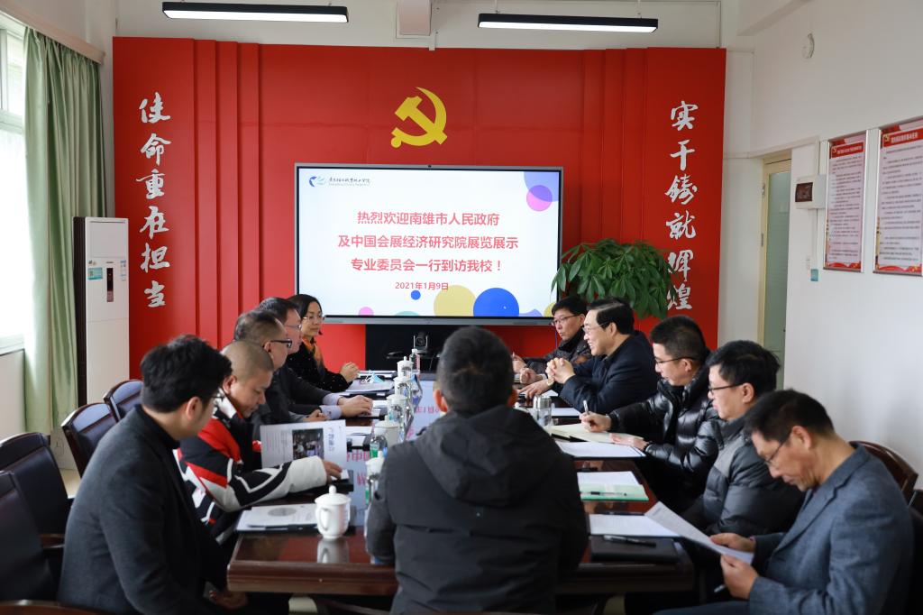 1月9号上午,南雄市人民政府副市长杨耀轩、市文化广电旅游体育局局长钟筱蓉、市旅游协会会长杜书祥、中国会展经济研究会展览展示专业委员会秘书长邱巍等一行人回访我校,校长卢坤建、副校长邓毛程进行接待。