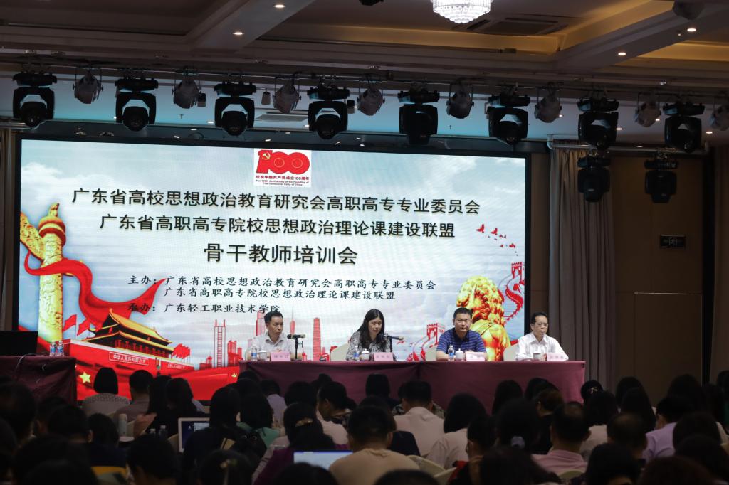 为庆祝中国共产党百年华诞,讴歌党的伟大功绩,学习贯彻习近平总书记在党史学习教育动员大会上的重要讲话精神,做好我省高职高专院校党史学习教育工作,由广东省高校思想政治教育研究会高职高专专业委员会、广东省高职高专院校思想政治理论课建设联盟联合主办、我校承办、“储水江全国高校思想政治理论课名师工作室”协办的全省高职高专院校2021年思政课骨干教师培训会于4月23日至25日在广州顺利举行。来自我省62所高职院校240余名马院院长、思政部主任、思政课骨干教师参会,学校党委副书记梁艳珍、广东财贸职业技术学院副校长张贤基出席开班式,开班式由我校马克思主义学院院长储水江主持。