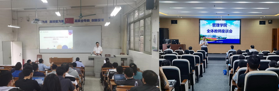 4月6日,卢坤建还出席了管理学院全体教师座谈会,并就校区建设、专业发展等问题进行了详细讲解,学院领导班子及全体教师参加了会议。(图文/信息技术学院 管理学院)