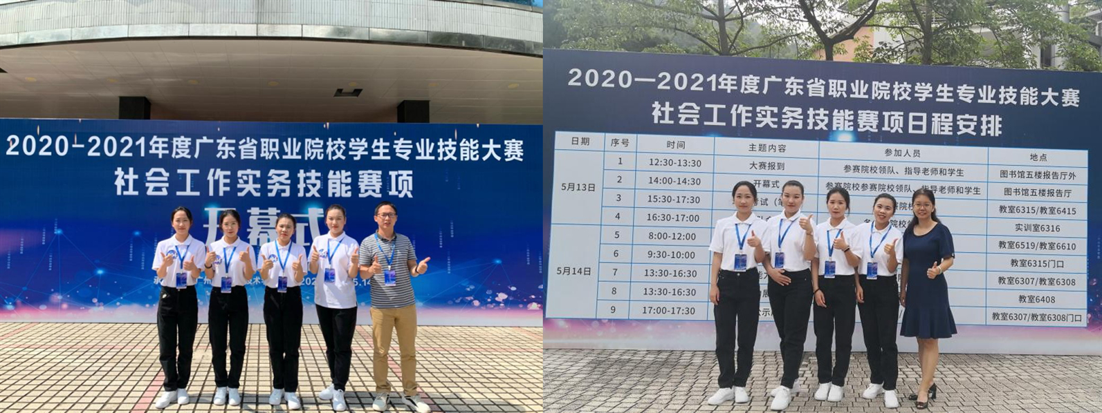 5月13日-14日,在2020-2021年度广东省职业院校学生专业技能大赛社工实务技能赛项中,我校管理学院社区管理与服务专业191班宋佳真、杨雅芳、曾紫晴、伍淑卿荣获二等奖。