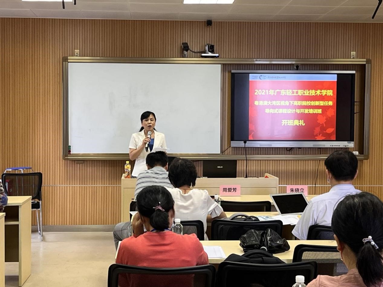 10月8日下午,2021年广东轻工职业技术学院粤港澳大湾区视角下高职院校创新型任务导向式课程设计与开发培训班开班仪式于广州校区顺利举行,由项目负责人朱晓立主持。食品与生物技术学院党总支书记周爱芳、副院长叶茂、党政办主任万梓成及相关老师出席仪式。