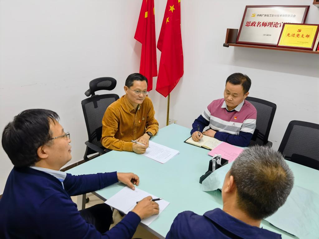 在第一实训楼207,梁艳珍悉心听取了赵薇、袁慎芝、黄英霞、孔锐、洪雅等老师的思想汇报,对思政课建设成绩给与肯定同时提出了要求:第一,讲政治。既要维护好课堂意识形态安全,也要在日常生活中言行一致,重视党性培养。第二,讲学习。思政课教师要积极加强教学科研,争取多出成果,做好专业课教师的表率。第三,讲创新。既要落实推广矩阵式教学法,更要在三教改革中继续创新。