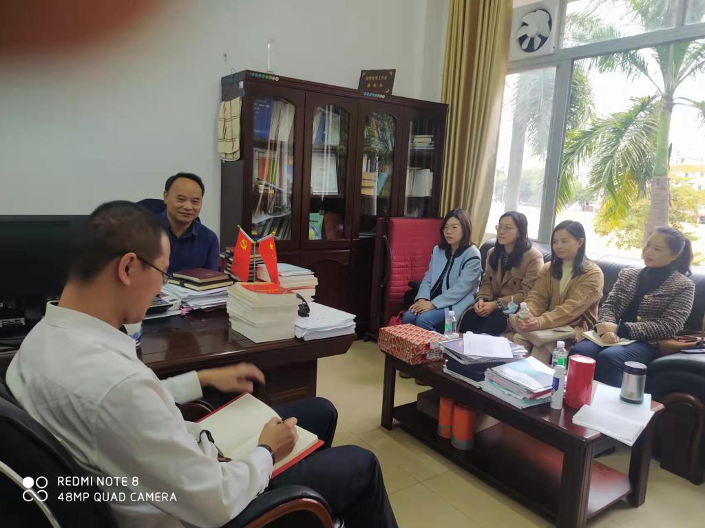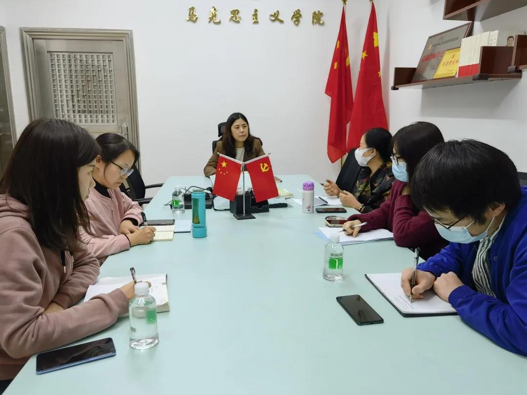 在办公楼206,朱其祥与张浒、任茵、袁淑、邝子文、张海媛等老师交流。当老师们汇报了思想和工作情况后,朱其祥指出,党中央高度重视思政课建设,马院队伍不断壮大,学校党委非常关心重视马院教师的成长发展,在我校“十四五”规划发展中,马院承担着重要的任务,希望各位教师继续加强学习党的十九届六中全会精神,同时结合党史学习教育,深化拓展,推动工作。
