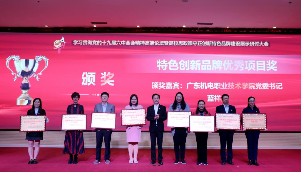广东省高校思政课区域协同创新中心(广轻工)、广东省高校思想政治教育研究会高职高专院校专委会、广东省高职高专院校思想政治理论课建设联盟近期举办了“思政课建设特色创新品牌项目”评选活动,共计17所高职院校参评。本次会议对在此次评选活动中获奖的学校及团队进行了颁奖,我校马克思主义学院副院长蔡小葵代表我校领奖。(图文/马克思主义学院)