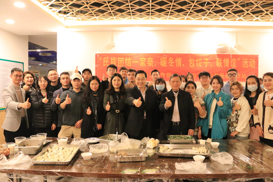 为深入贯彻落实习近平总书记关于民族团结进步重要论述的精神,让学校各民族学生在校感受到家的温暖,弘扬中华传统文化,体验劳动实践,在冬至来临之际,12月20日,由党委学生工作部主办,学校少数民族工作站、信息技术学院党总支联合承办的“民族团结一家亲,暖冬情、包饺子、联情谊”活动在广州和南海两校区同时进行。学校校长卢坤建,党委副书记、纪委书记朱其祥,党委副书记梁艳珍参加了本次活动,学校领导在现场与同学们座谈交流、一起包饺子,现场气氛温暖融洽。