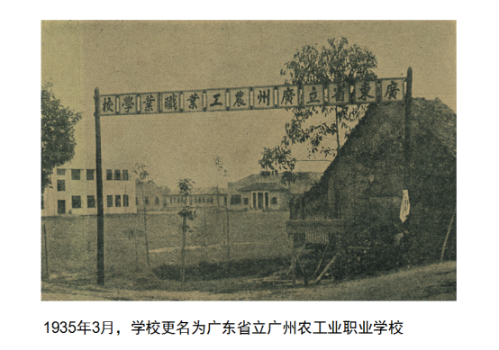 1935年3月,广东省立第一职业学校更名为广东省立广州农工业职业学校,简称“省广职”。
