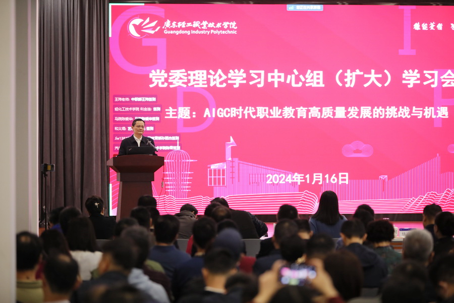 1月16日,学校在广州校区第二实训楼的商演中心召开党委理论中心组(扩大)学习会,邀请了中国教育技术协会副秘书长,我校产教融合大数据研究所所长侯小菊博士做专题报告。学校党委书记杜安国主持,全体校领导出席学习会。