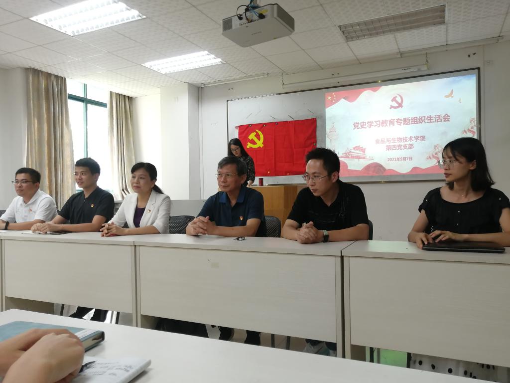 9月7日下午,学院第四党支部开展线下党史学习教育专题组织生活会,学校党委副书记、纪委书记朱其祥,学院党总支书记周爱芳,党总支副书记刘嘉俊,第四党支部全体师生党员参与此次专题组织生活会。