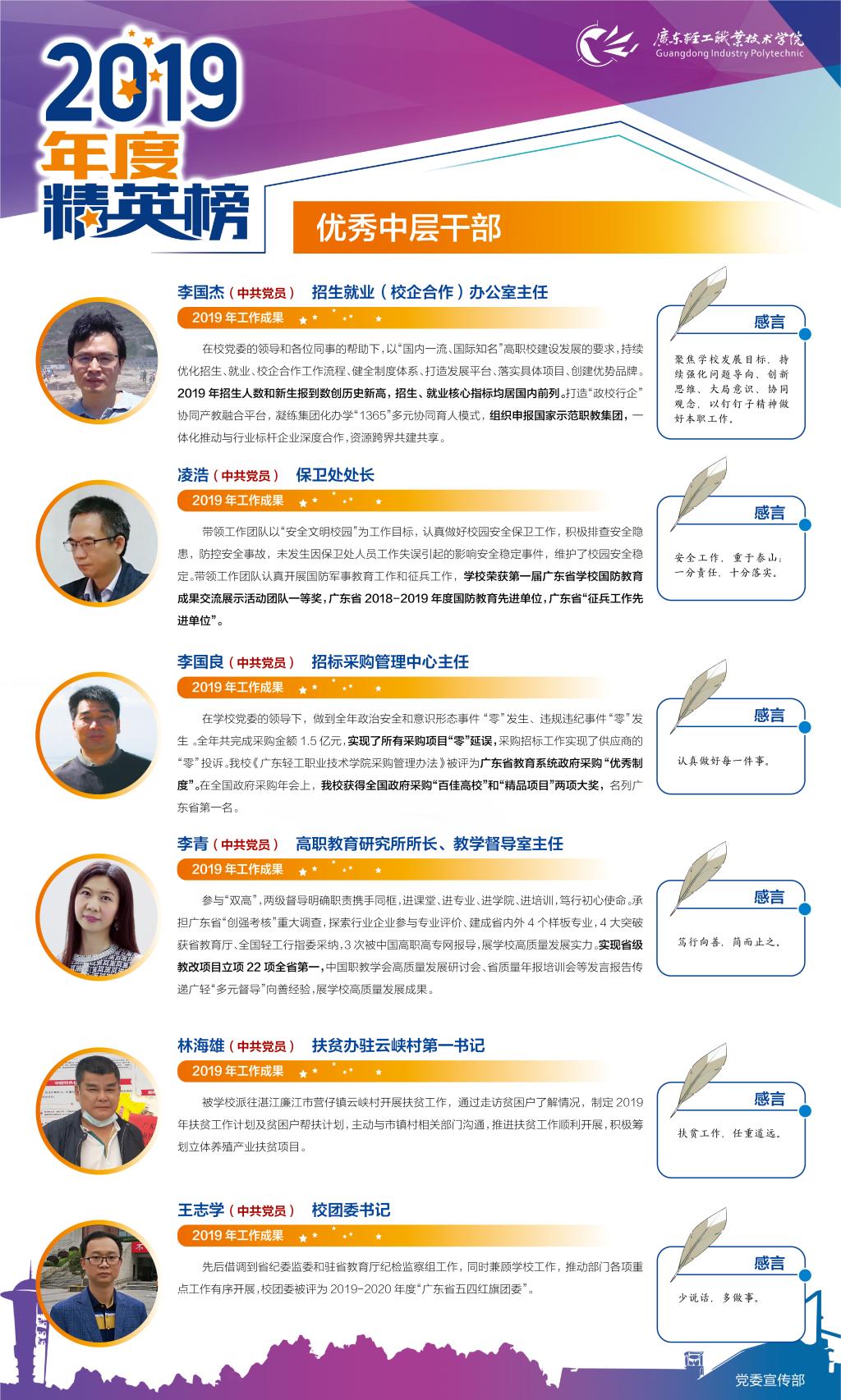 优秀中层干部(2019年度广轻精英榜)