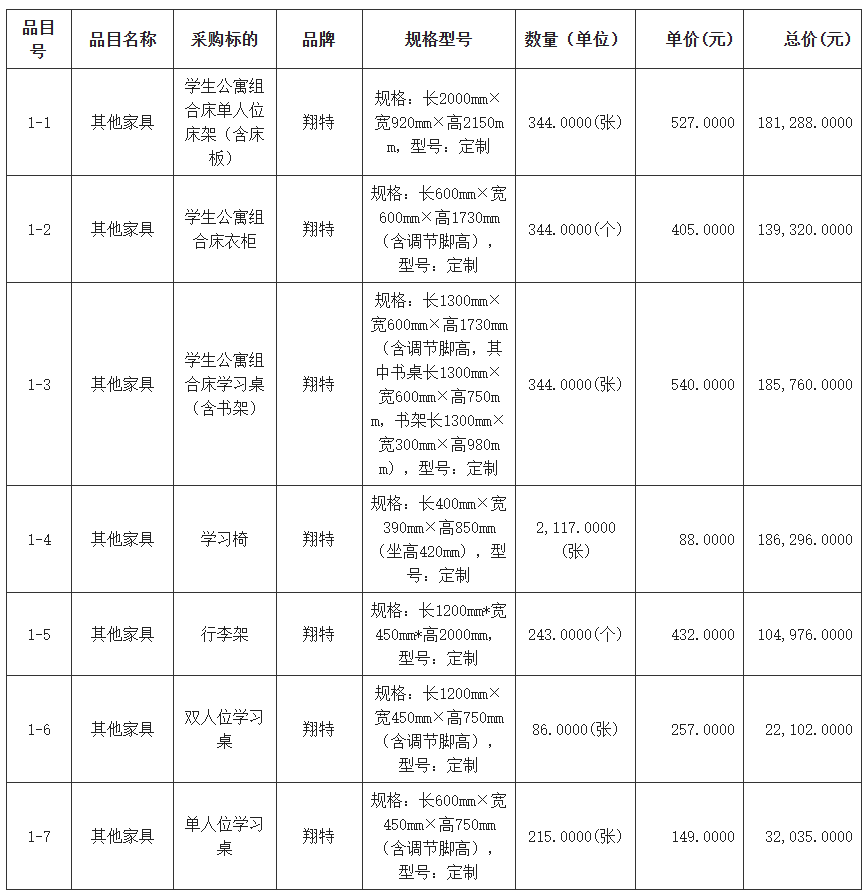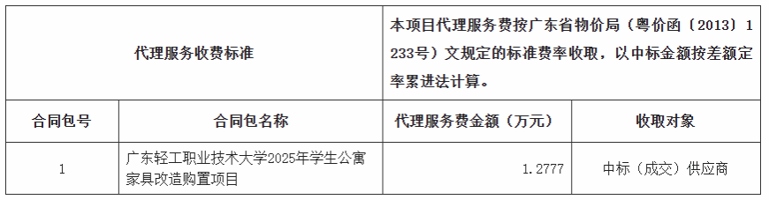 合同包1(广东轻工职业技术大学2025年学生公寓家具改造购置项目):
