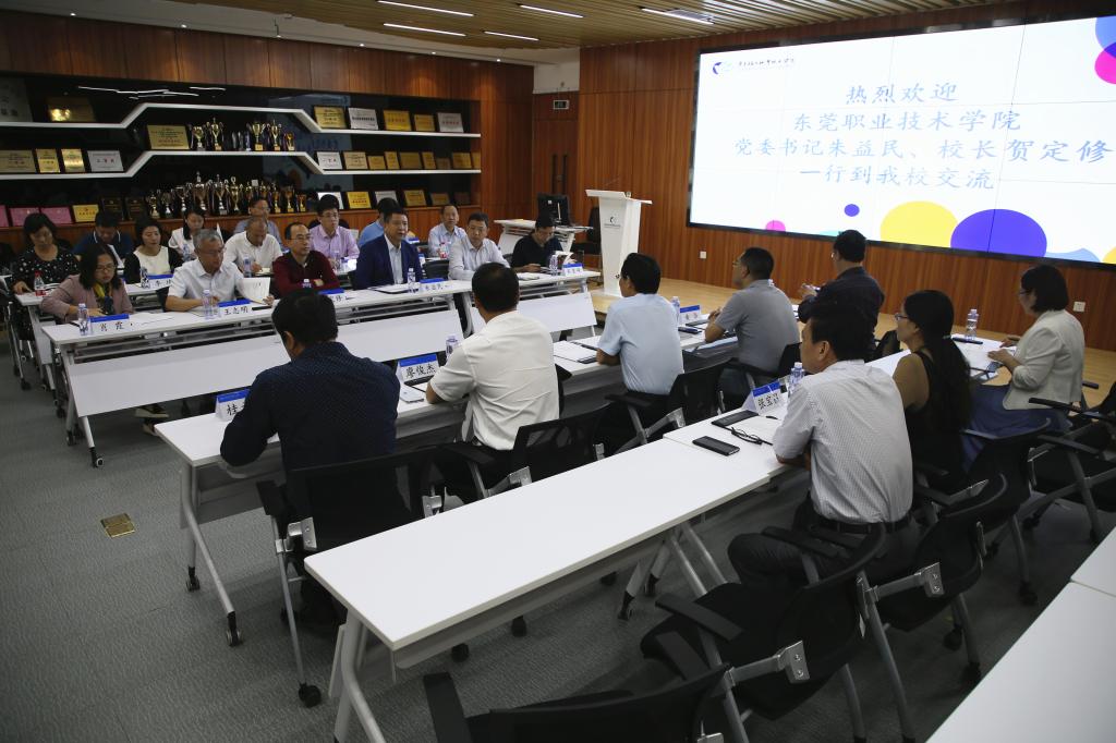 1113日,东莞职业技术学院党委书记朱益民,党委副书记、校长贺定修一行17人到访我校。我校党委书记杜安国热情接待来访客人。