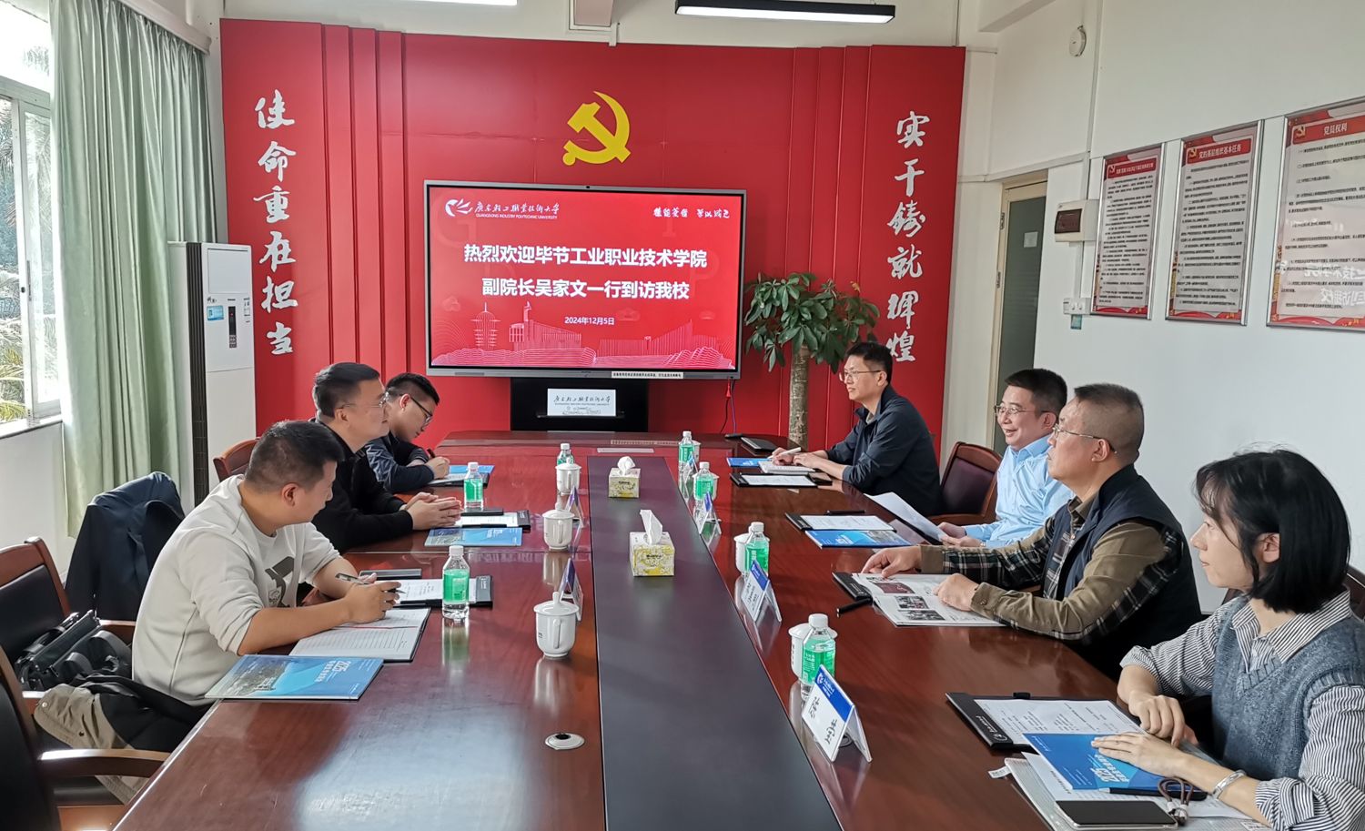 12月5日下午,毕节工业职业技术学院副院长吴家文一行3人来访我校,学校副校长邓毛程在新港校区办公楼二楼会议室接待来访客人并开展座谈。